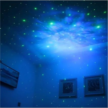 Transforma cualquier espacio con 8 efectos de galaxias en movimiento. Su cabeza magnética permite proyectar el cosmos en cualquier dirección. Incluye control remoto para ajustar brillo, velocidad y personalizar la atmósfera. Relajación y universo, al instante.